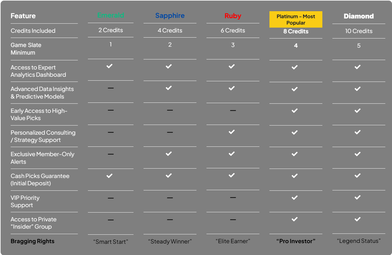 Go beyond standard picks and gain expanded access, early alerts, and elevated earning potential.